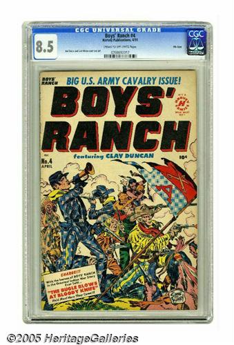 <B>Boys' Ranch #4 File Copy (Harvey, 1951) CGC VF+ 8.5 Cream to off-white pages.</B></I> Simon and Kirby art. Overstreet 2005 VF 8.0 value = $209; VF/NM 9.0 value = $305. CGC census 3/05: 2 in 8.5, 1 higher.