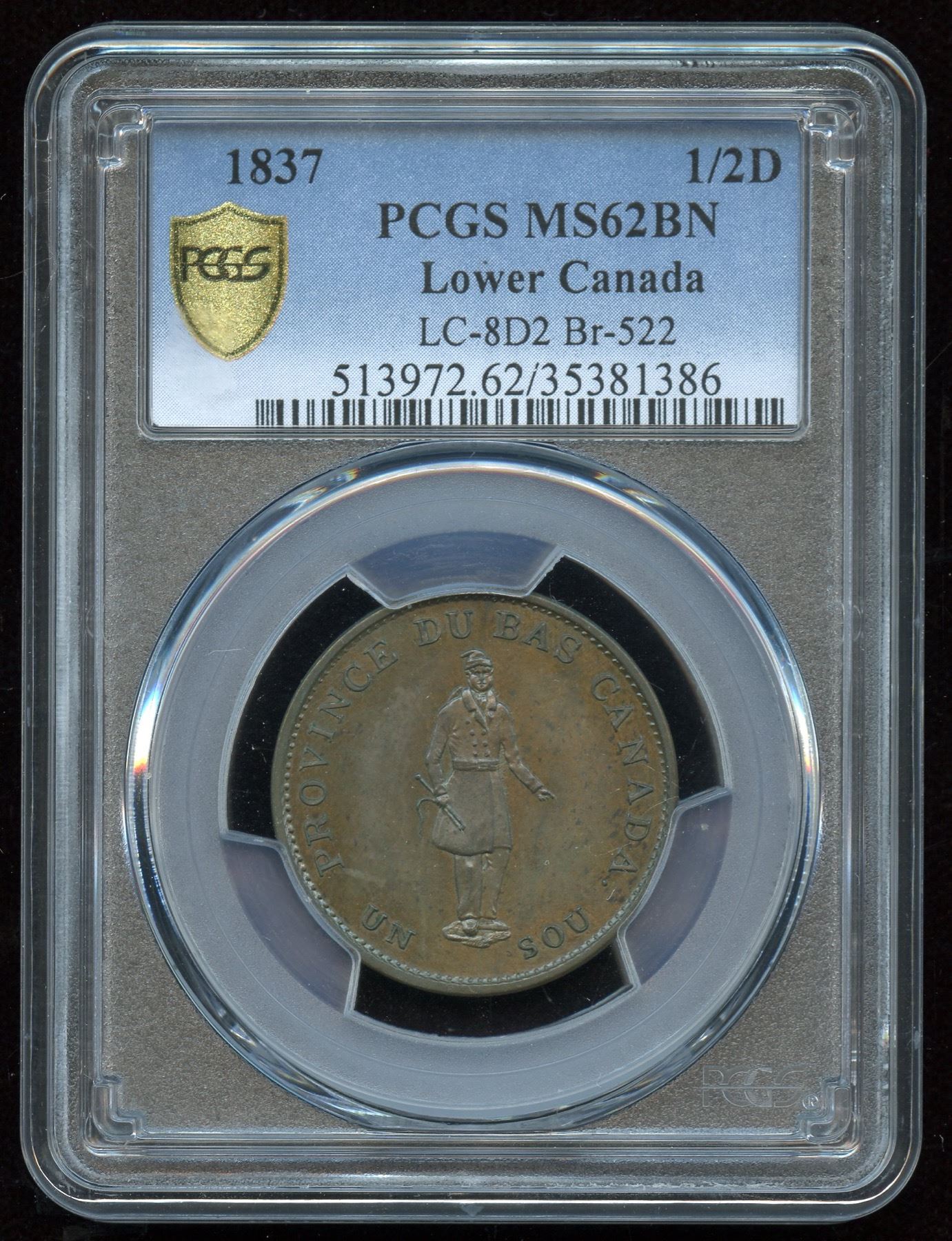 Br. 522, Lower Canada, Half Penny, Un Sou, 1837