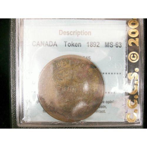 Br:645 token 1892 CCCS MS63. A well struck example MS63 for type.