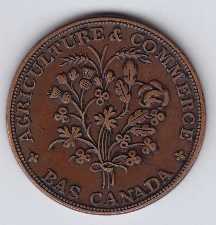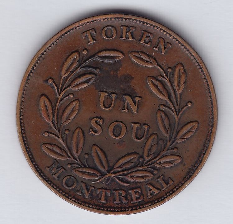 CH LC-44A1. The coin was first reported by McLachlan in Canadian numismatics… in 1886. It is not contemporary to the Bouquet-Sou series. EF.