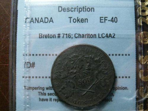 Br # 716, Charlton # LC4A2 CCCS certified EF-40, Banque du Peuple Montreal un Sou, Agriculture & Commerce Bas-Canada, Arnault Issue (1837) also caled Rebellion Sou.