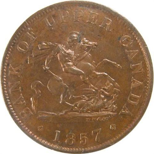 Breton 720 Bank of Upper Canada 1857 Halfpenny, PC-5D, ICCS MS-63
