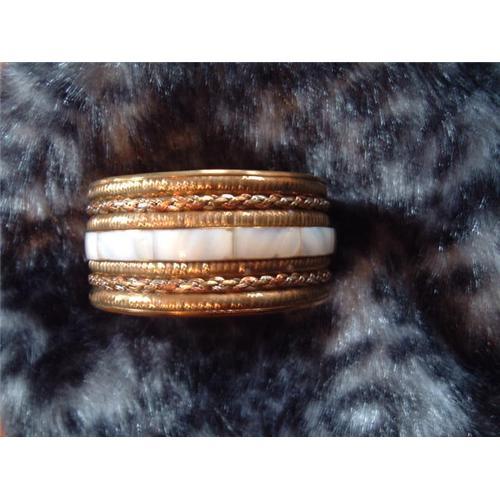 SHIPPING FREE WITHIN U.S. Beautiful Vintage brass and mother of pearl bracelet with chain and beaded pattern on each side of mother of pearl; would fit any woman's average size wrist easily.