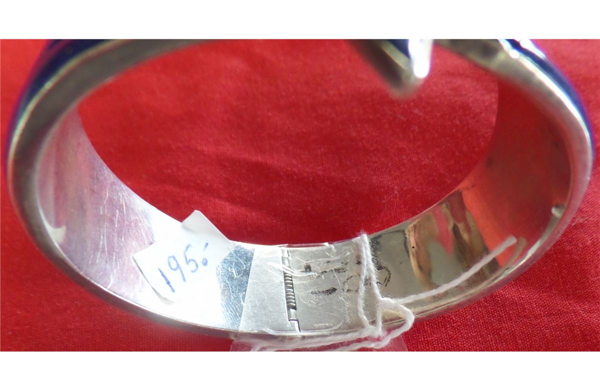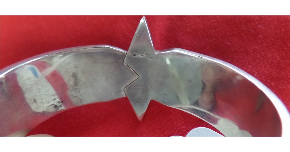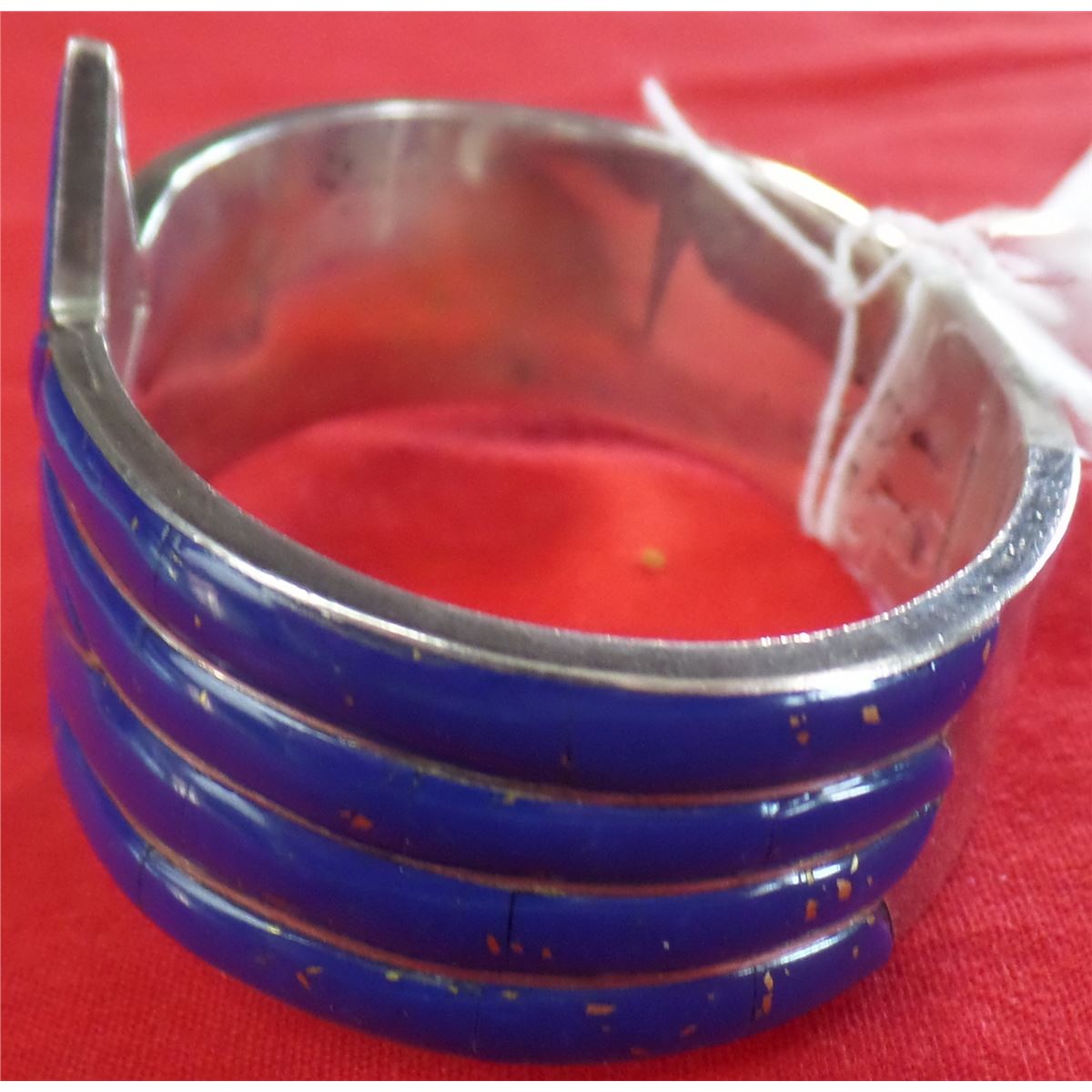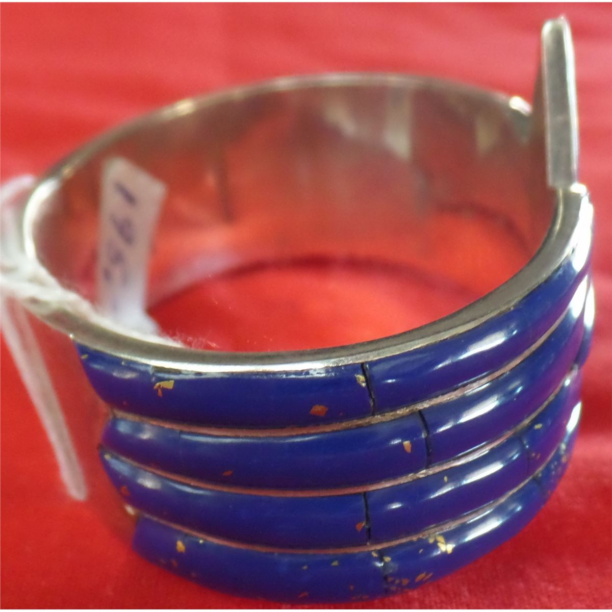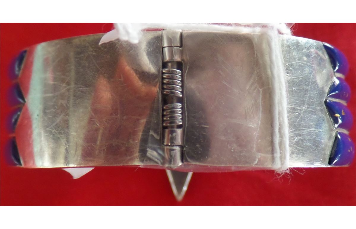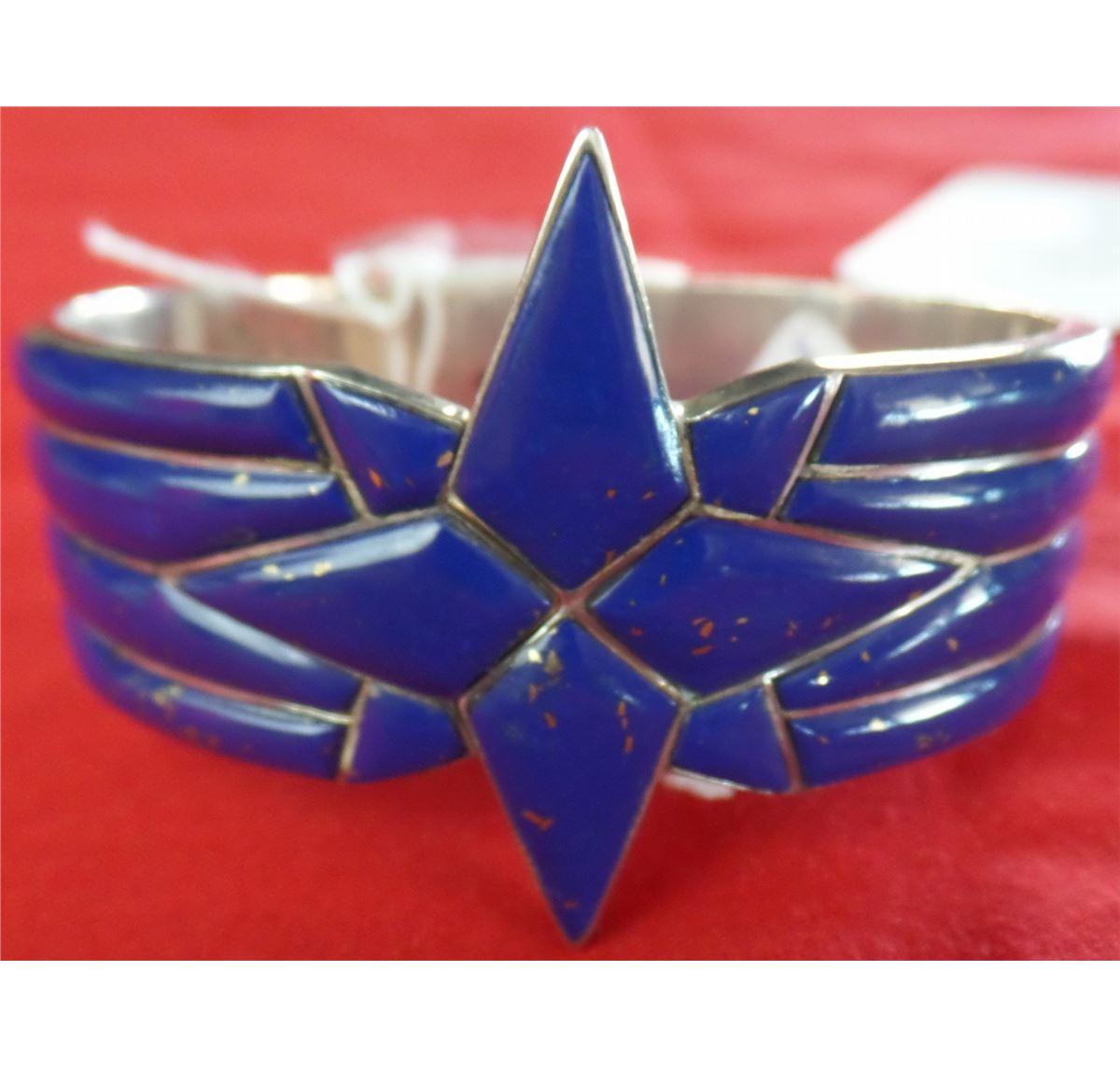 This inlaid bracelet measures 7 1/2 x 1 inch. The lapis Azul bracelet has an hinged opening with a star design. The bangle is approximately 35 grams. Used condition. Shipping $15.00