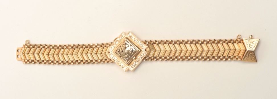 Flip Top 14K Bracelet Watch marked Geneva. 1950's style, Great condition, 40 grams inc. movement. Est:$600-1,200