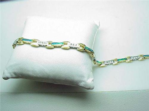 Bracelet created opal and diamond .95Ctw 14kt yellow gold 7"14.6gr