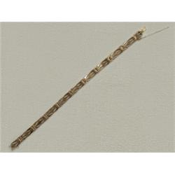 14 K gold, geometrical style pierced links, sliding clasp, safety chain, circa 1920, marked, length: 18 cm, weight: 11.7 g, in good condition.