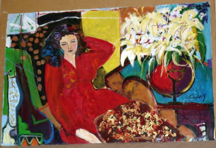 A large 31x47 in. signed oil on paper by one of Israel’s most popular contemporary artists. Circa 1990. Unframed. Domestic shipping and packing $125. International depends upon location.