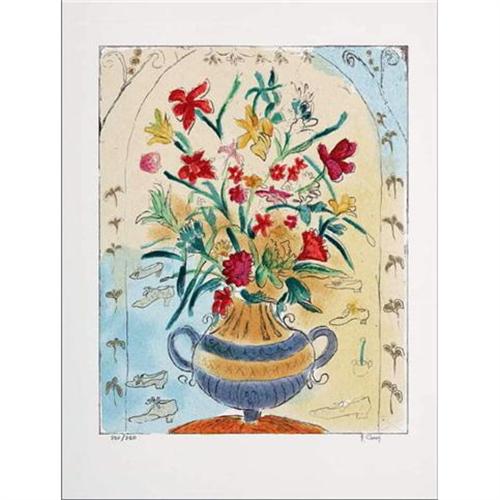 A beautiful floral serigraph on canvas by one of Israel?s most popular contemporary artists. Image size 15.5 x 10.5 in., signed and numbered in an edition of 99. Can be framed like a painting, without glass. Domestic shipping-$25, International depends upon location.