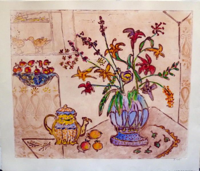 Bracha Guy, Unique Signed, Hand Colored Etching