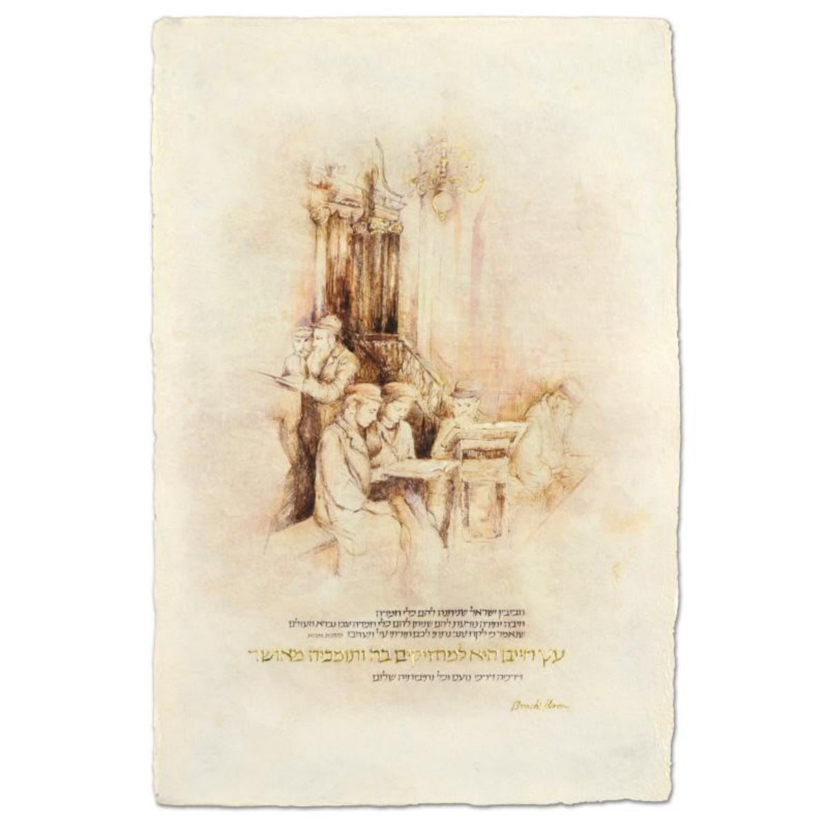 "Children Learning" is a mixed media giclee on handmade Indian paper with goldleaf by Brachi Horen, hand signed by the artist! This creation received personal attention by the artist in the form of water coloring and gilding. Includes Certificate of Authenticity! Measures approx. 15.5" x 23" (with border), 12" x 18" (image). Reference #: 215303