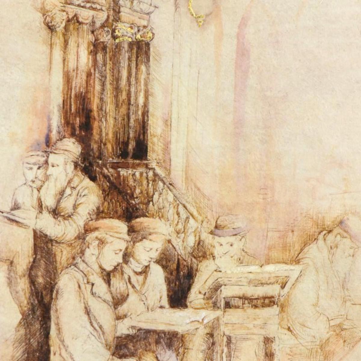 Brachi Horen, "Children Learning" Hand-Embellished Mixed Media with Goldleaf, Hand Signed with Certi