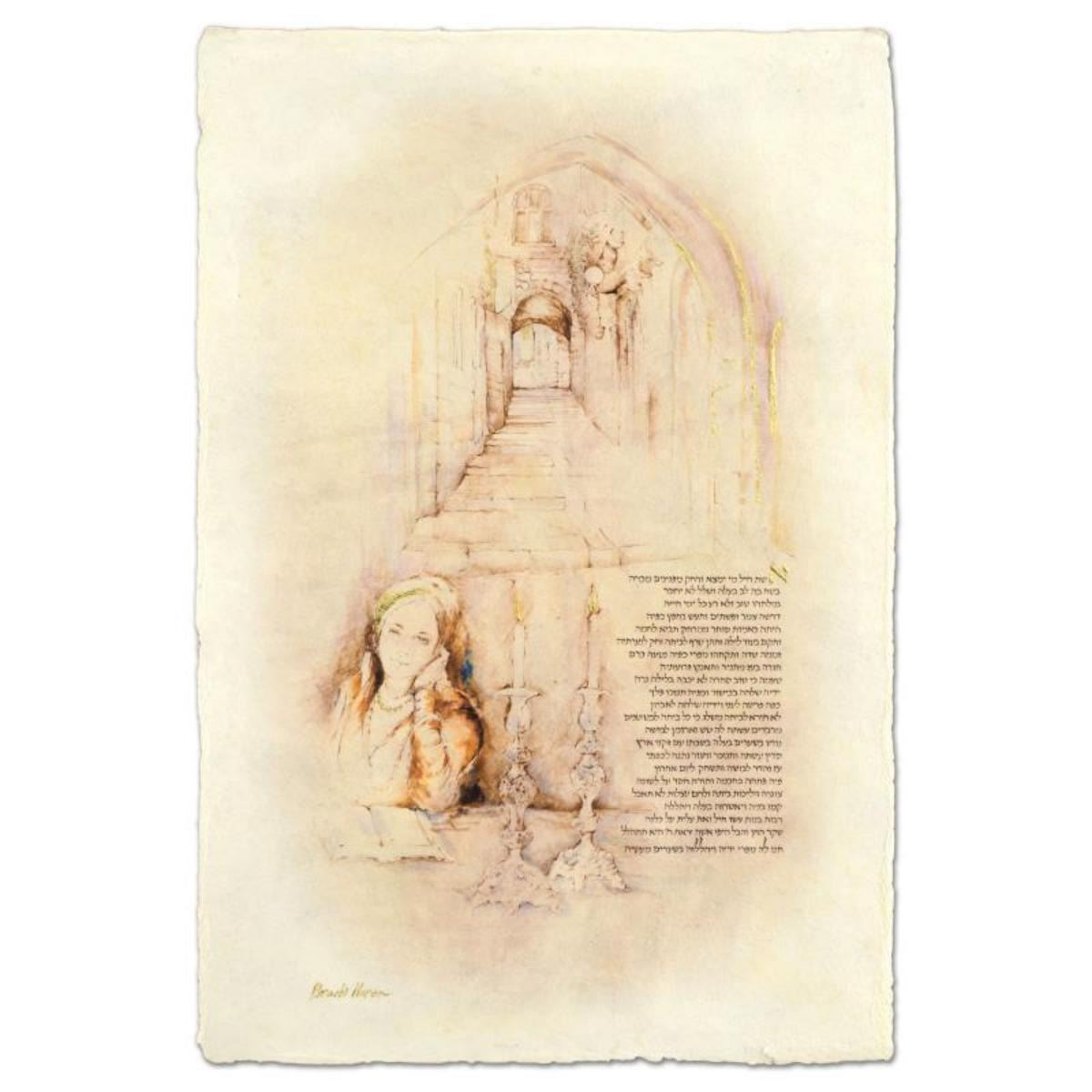 Brachi Horen, "Eshet Chail" Hand-Embellished Mixed Media with Goldleaf, Hand Signed with Certificate