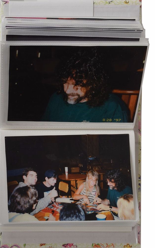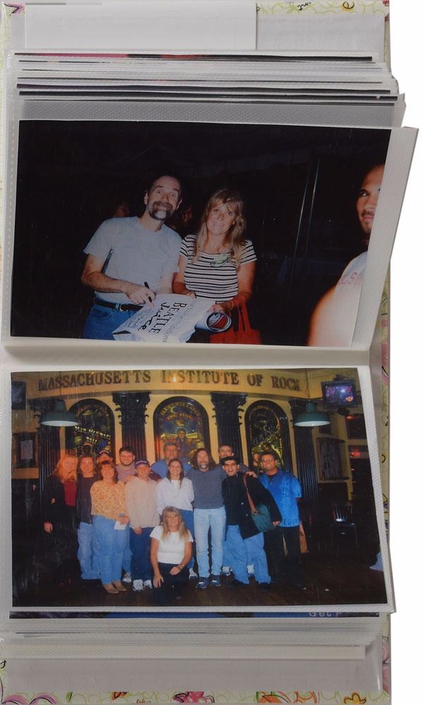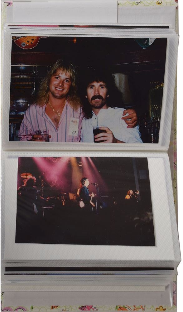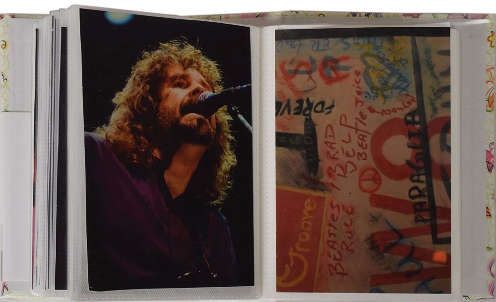 Brad Delp's personally-owned collection of 65 modern digital prints of photos from throughout his career, ranging in size from 4 x 3.5 to 4 x 6, most showing him on stage during performances, as well as some of him meeting with fans and traveling. Contained within a small album. In overall fine condition. From the Brad Delp Collection, and accompanied by a letter of provenance from Micki Delp.