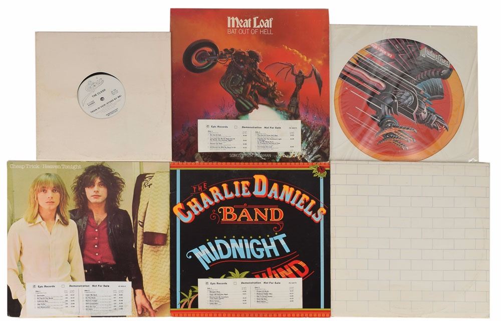 Grouping of 24 promotional albums from the personal record collection of Brad Delp, all in their original album sleeves, with the majority bearing “Demonstration, Not for Sale” labels. The artists include: Peter Baumann (Romance ’76); Boxer (Absolutely); Café Jacques (Round the Back); The Charlie Daniels Band (Midnight Wind); Cheap Trick (Heaven Tonight); The Clash (Train in Vain (Stand By Me) single); Russell Dashiell (Elevator); Dragon (self-titled); George Duke (Reach for It); The Eagles (‘Please Come Home for Christmas’ / ‘Funky New Year’ single); Walter Egan (Not Shy); Dee Dee Sharp Gamble (What Color Is Love); Nona Hendryx (self-titled); Judas Priest (World Tour 1982); Killough and Eckley (self-titled); Locust (Playgue); Meat Loaf (Bat Out of Hell); Frank Marino and Mahogany Rush (Live); Michael Murphy (Lonewolf); The Motors (self-titled); Native (‘Take a Chance on Love’ single); Network (self-titled); Pink Floyd (The Wall); Starwood (self-titled); Timberline (The Great Timber Rush); The Tourists (Reality Effect); Dexter Wansel (Voyager); and David Werner (Live). In overall very good to fine condition. All of the records are included. From the Brad Delp Collection, and accompanied by a letter of provenance from Micki Delp.
