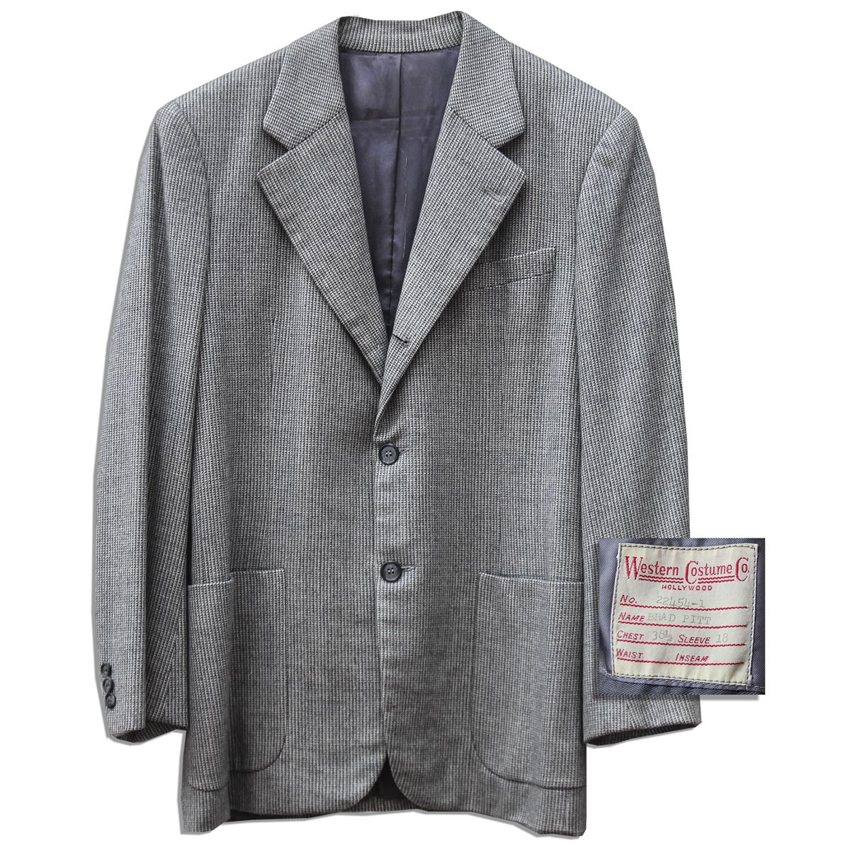 Brad Pitt costume from the 1994 film, ''Legends of the Fall''. Pitt played Tristan Ludlow in the epic historical drama. Costume includes a grey wool blend houndstooth blazer with two buttons. Measures 18'' x 32'' with original ''Western Costume Co.'' tag sewn to inseam pocket with ''Brad Pitt'' printed to tag. Costume was not screen-worn, as is indicated by the intact wardrobe tag. Near fine condition.