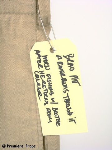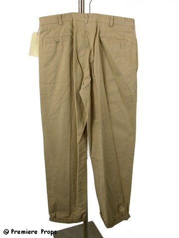 From director Robert Redford's 1992 ethereal film "The River Runs Through it", these are hero screen worn Khaki pants worn by the main character Paul Maclean (Brad Pitt). Comes with two actual production wardrobe tags. The first reads "Brad Pitt. A River Runs Through it. Worn fishing w/brother after he returns from college"; The second tag reads "Brad Pitt Khakis" (bottom corner says A15).