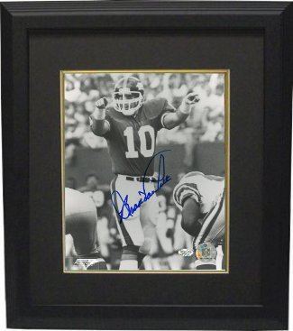 Brad Alan Van Pelt was an football linebacker who played fourteen seasons in the National Football League. A two-time All-American (1971, 1972) and the 1972 Maxwell Award winner as college football's best player, he was drafted by the New York Giants, earning five Pro Bowl selections at linebacker between 1976 to 1980 during his ten years with the team. He rounded out his career with the Los Angeles Raiders from 1984 to 1985, and the Cleveland Browns in 1986. Brad Van Pelt (Deceased) has hand autographed this New York Giants 8x10 Photo. Certificate of Authenticity from Athlon Sports. Custom Black Mat and Premium Black Framed as shown.