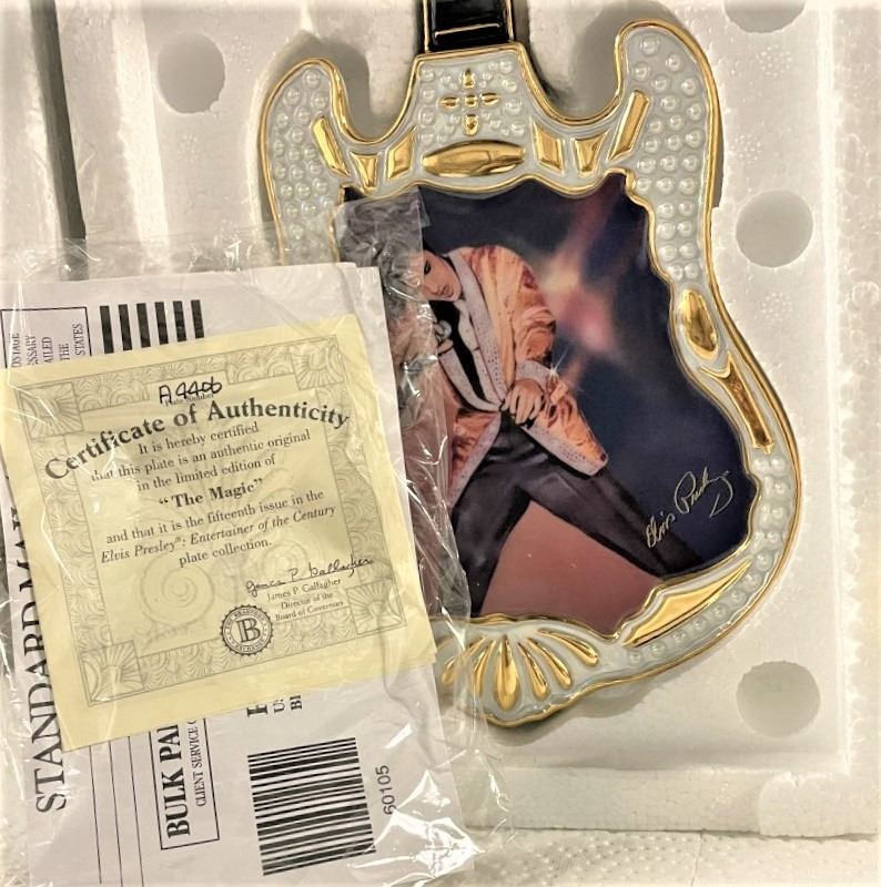 Bradford Exchange Elvis Presley "The Magic" Guitar Shaped Plate- A4406 , limited edition series. 12-3/4 inches long x 5-3/4 inches wide