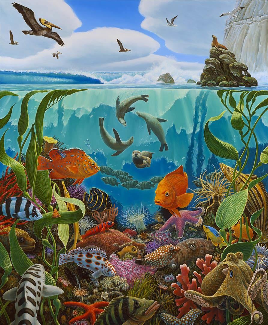 "California Roll" says hold the avocado, but enjoy beautiful snorkeling in the Pacific, captured here in Bragg's amazing amalgam of underwater life. A 30x24" giclee on canvas, this will brighten your room and bring marine life into your home without getting anything wet! Artist COA included.