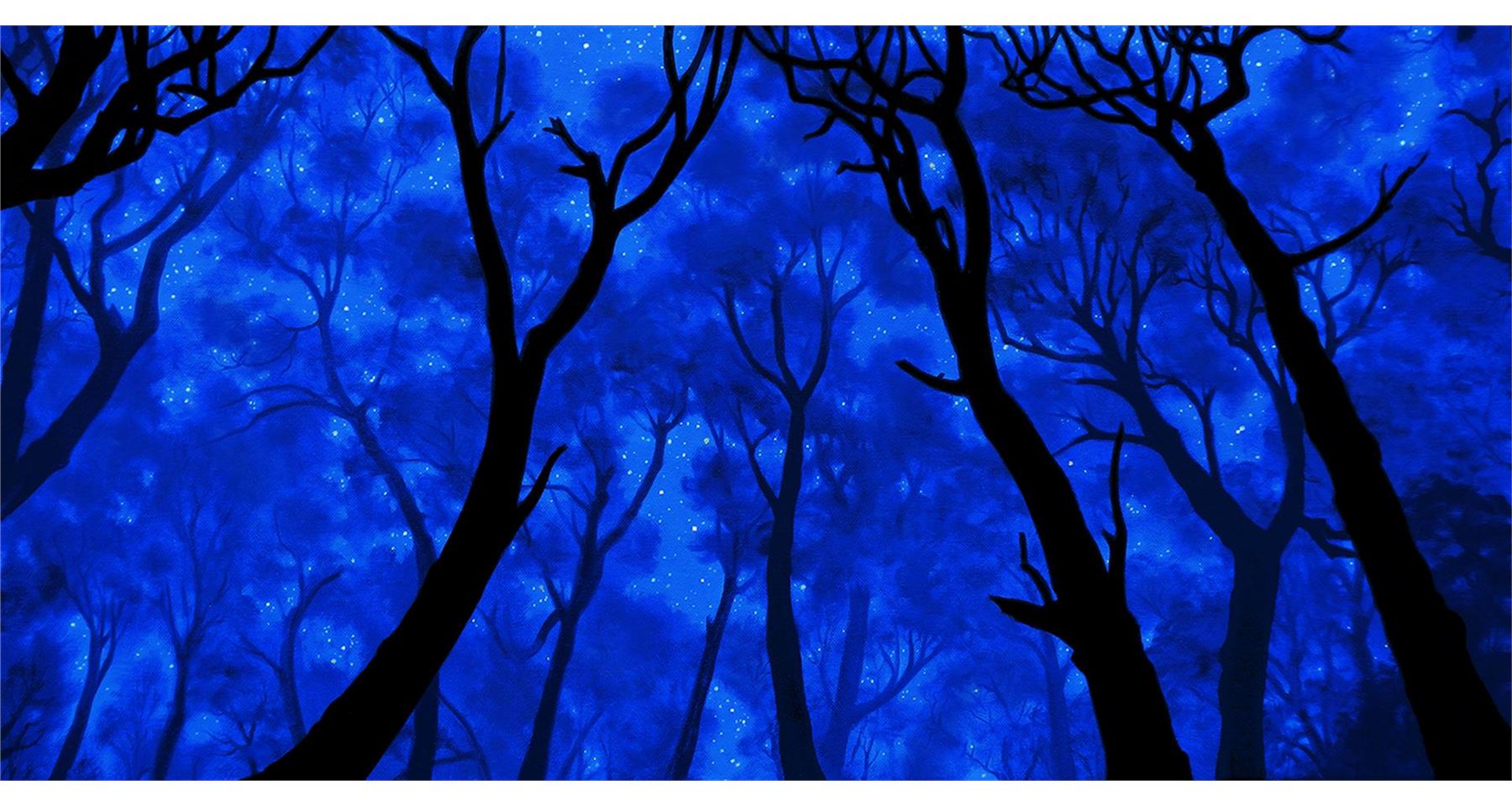 "Forest Night" is a 20x40" giclee on canvas. This stunning nightime glimpse of a mysterious forest under blue sky and stars will set the mood for any room it finds itself in. Signed on the back. Artist COA included.