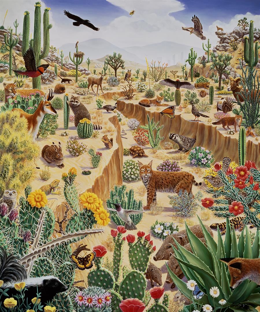 "Last Oasis" by Charles Lynn Bragg was originally painted for The Nature Company. This limited edition giclee features the surviving, but in many cases endangered creatures of Nature's deserts, in their habitat. A 30x36" giclee on canvas, it is signed and numbered with an Artist's COA.