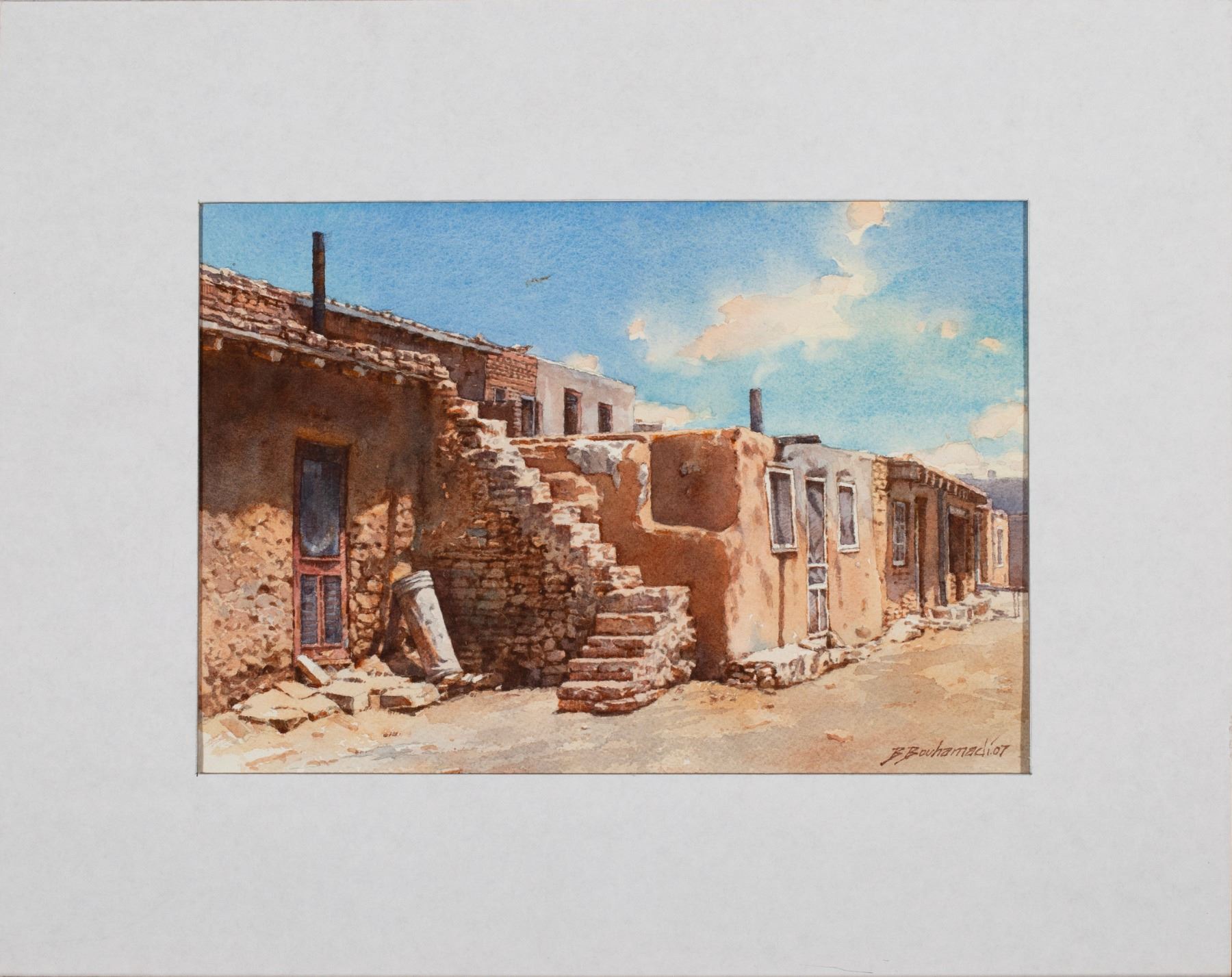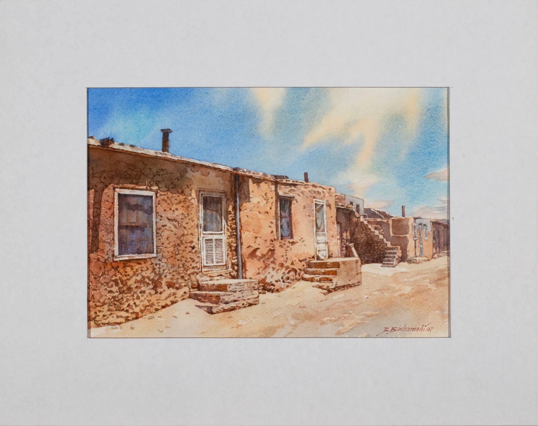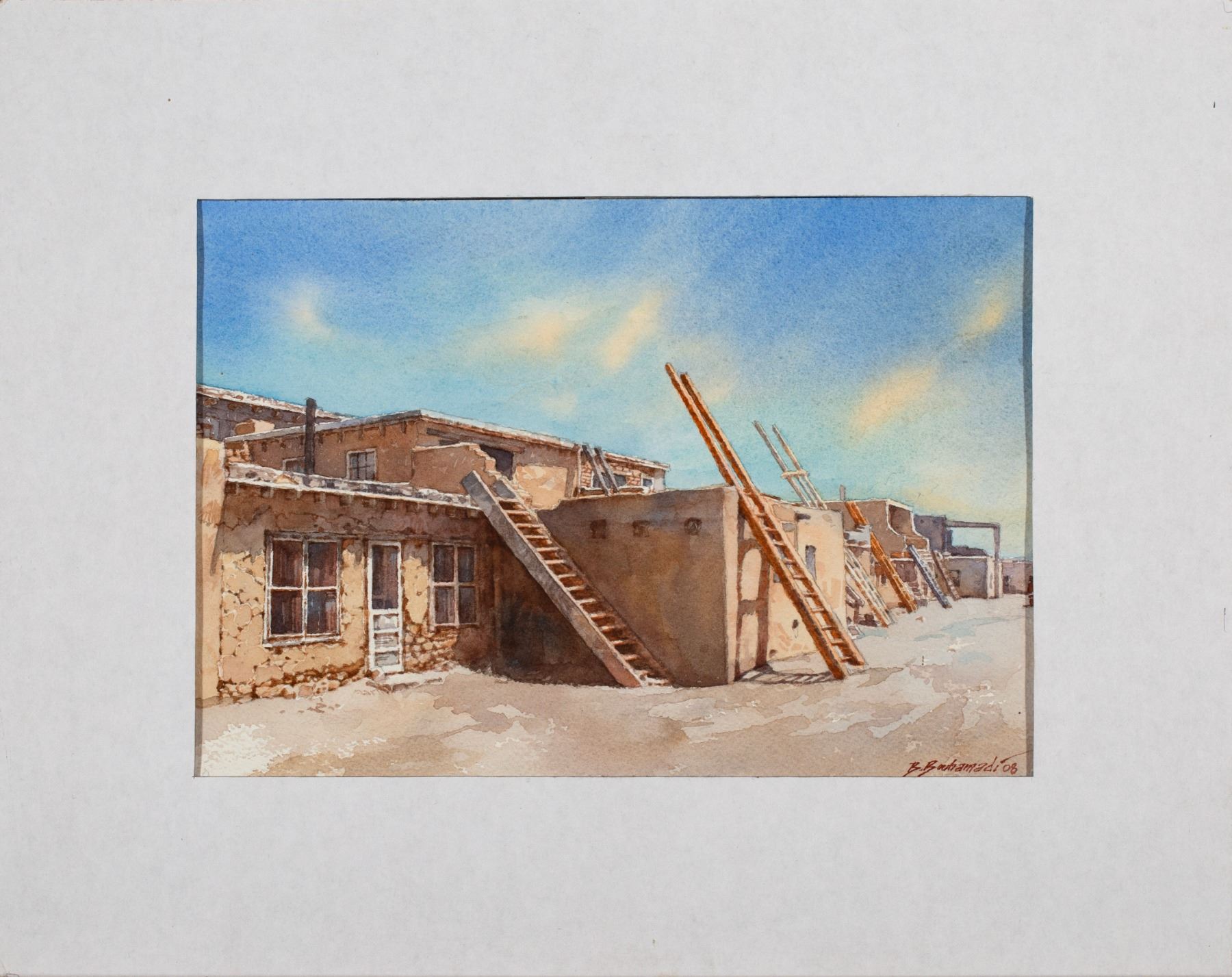 Brahim Bouhamadi (b. 1956) "Untitled: Group of three Pueblo scenes in Acoma Watercolors, 2007-2008";