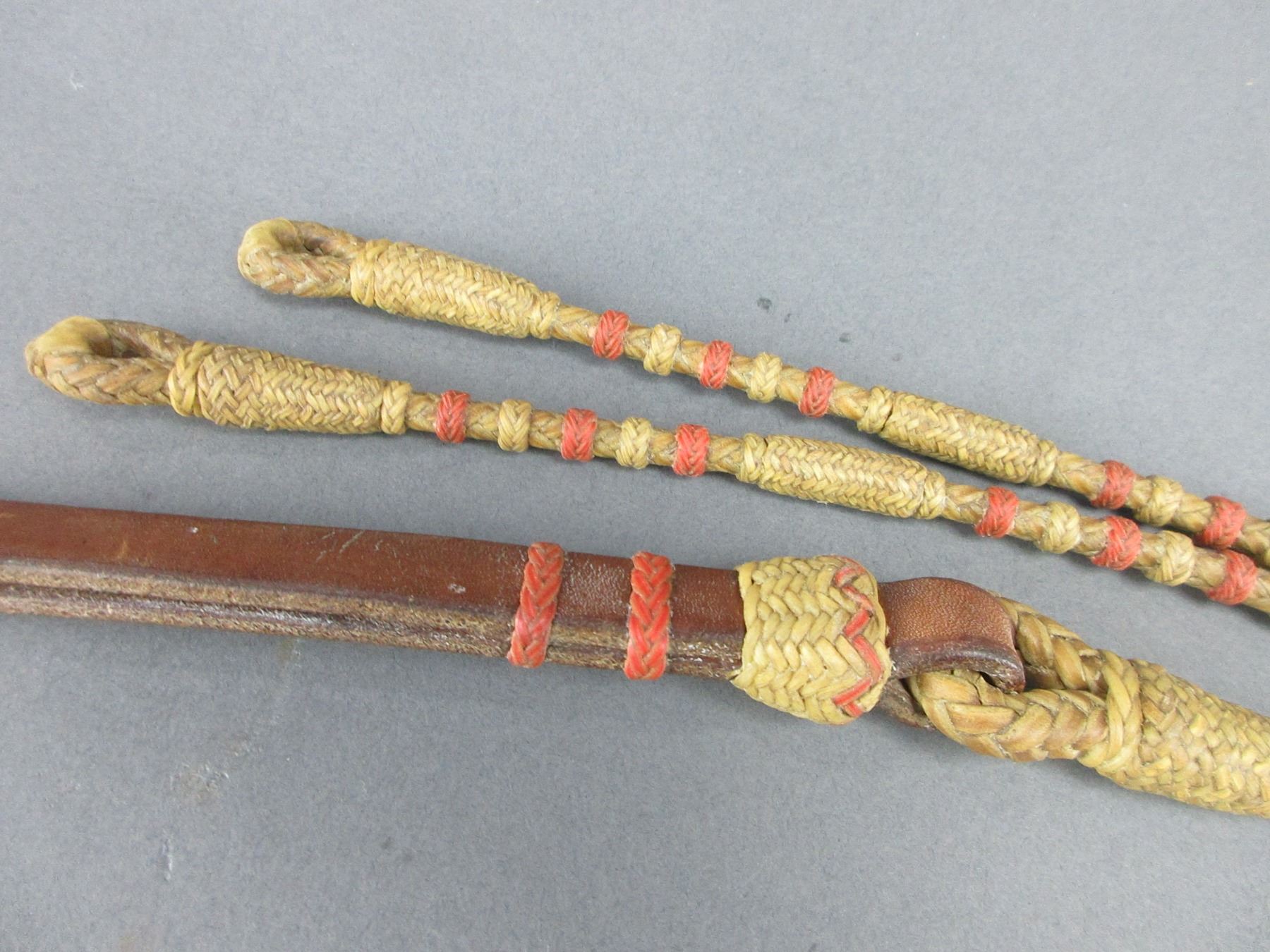 Braided Rawhide Romal Reins Attributed To Luis Ortega- 93" With Popper- Excellent Work