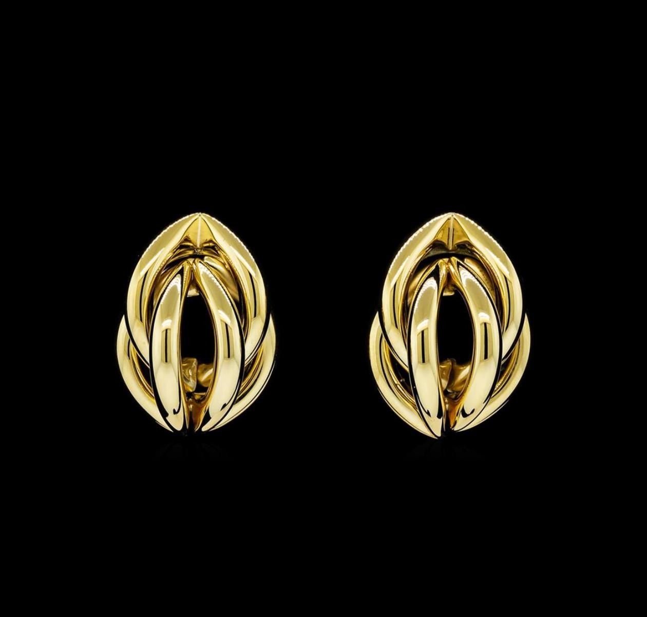 High end designer jewelry. Braided Shell Shaped Post Earrings - Gold Plated. Gold Plated Stud Set. Gold. 1.25inch.