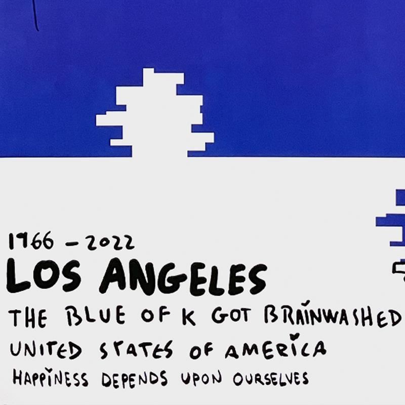 This is a limited edition poster by Mr. Brainwash, numbered 309/500 and hand signed by the artist. Measures approx. 24" x 36" (image). There are some minor creases in the blue area of the paper caused by Mr. Brainwash handling the piece when he signed the artwork.