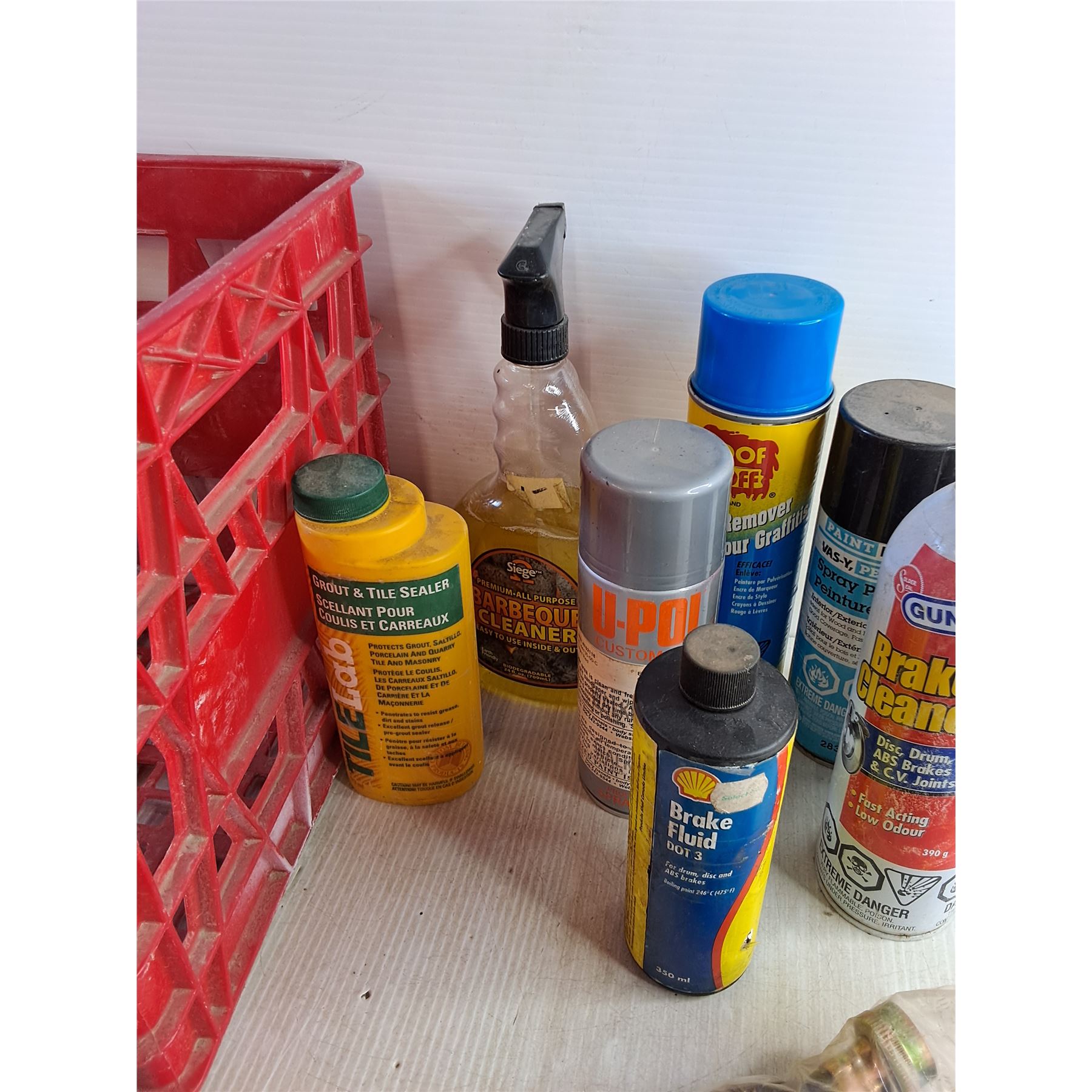 Brake Cleaner, Spray Paint, DOT 3 Brake Fluid, Plumbing Hose, Paint Remover, Milk Crate-CANNOT SHIP