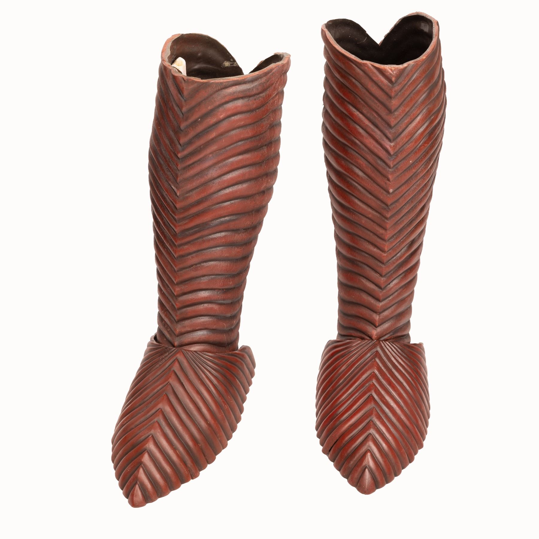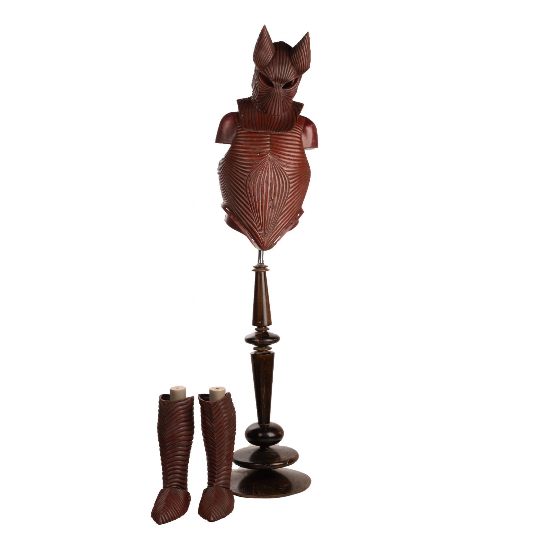 Designed by Eiko Ishioka, this lot features a red helmet, chest piece, and boots and adds to the film’s gothic and opulent style. The helmet is a replica. The armor is distinct as it resembles a “lobster tail” design throughout all of the components, which contributes to the overall aesthetic of the film, emphasizing Dracula's association with blood and the supernatural. The choice of red for the armor is symbolic, representing both the character's connection to vampirism and his status as a powerful and otherworldly figure. The suit components feature slight wear from production use but remain in overall great condition. This lot is accompanied by a Certificate of Authenticity from Studio Auctions.