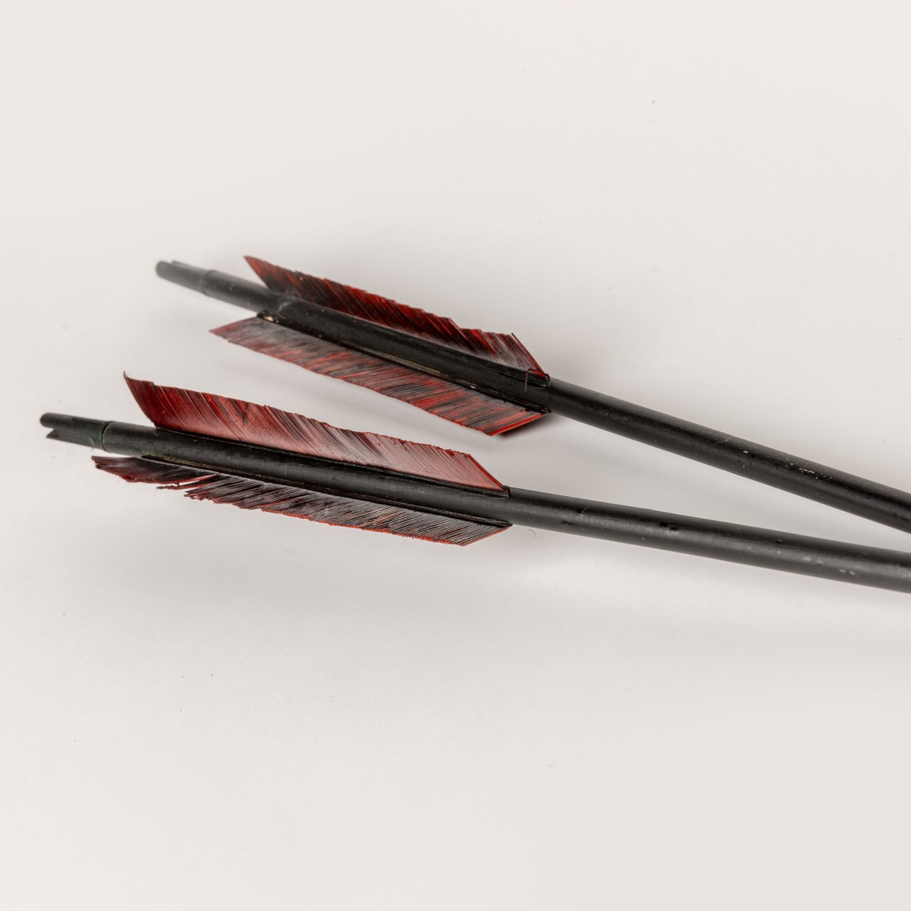 Two arrows featured in Francis Ford Coppola's 1992 lavish horror adaption of Bram Stoker's Dracula. Arrows of this style can be during the film’s opening battle scene when Dracula heads to battle. These custom-made arrows feature a black body with rear red nocks and silver tips. The body of the feather is made up of a resin-like material and the tips are visibly bent front production use, along with minor paint chipping. Overall, the arrows remain in great condition. This lot is accompanied by a Certificate of Authenticity from Studio Auctions.