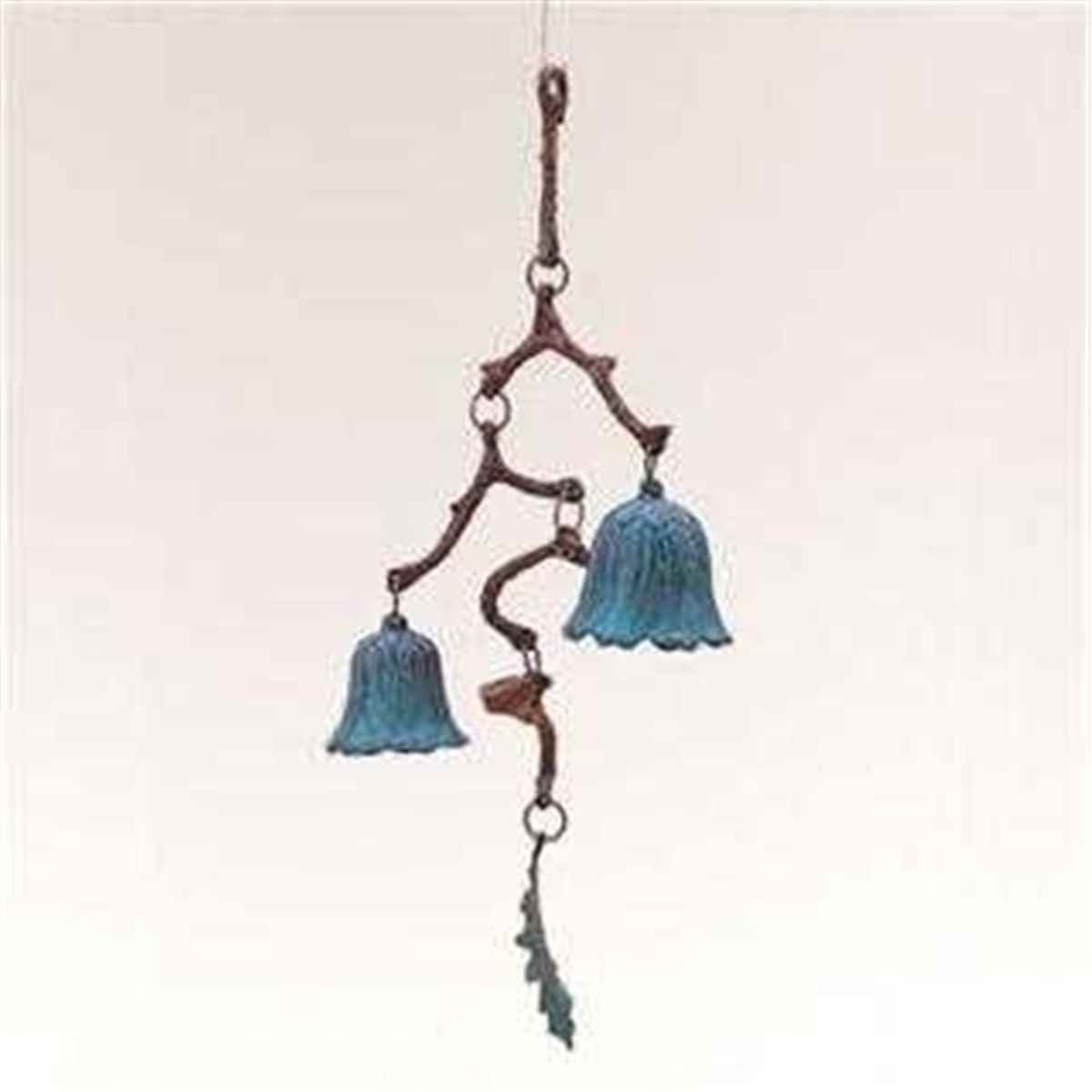Branch & Leaf Garden Bell/ Wind Chime - 19"H 7"W 4"D - Brass Garden Bell / Wind Chime