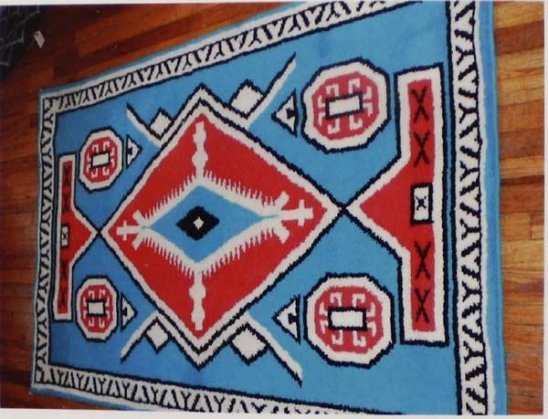 Gorgeous Brand New Anasazi Traders 100 Percent Wool Hand Knotted Rug, measures 3' 4'' x 4' 11'', approx. .75'' thick, made by the Quichua Indians, each carpet is unique and one of a kind, hand dyed wool, it takes an entire month for 2 to 4 artists to complete one carpet, APPROXIMATE SHIPPING AVAILABLE UPON REQUEST