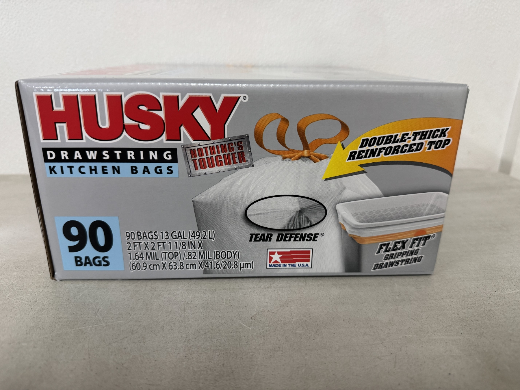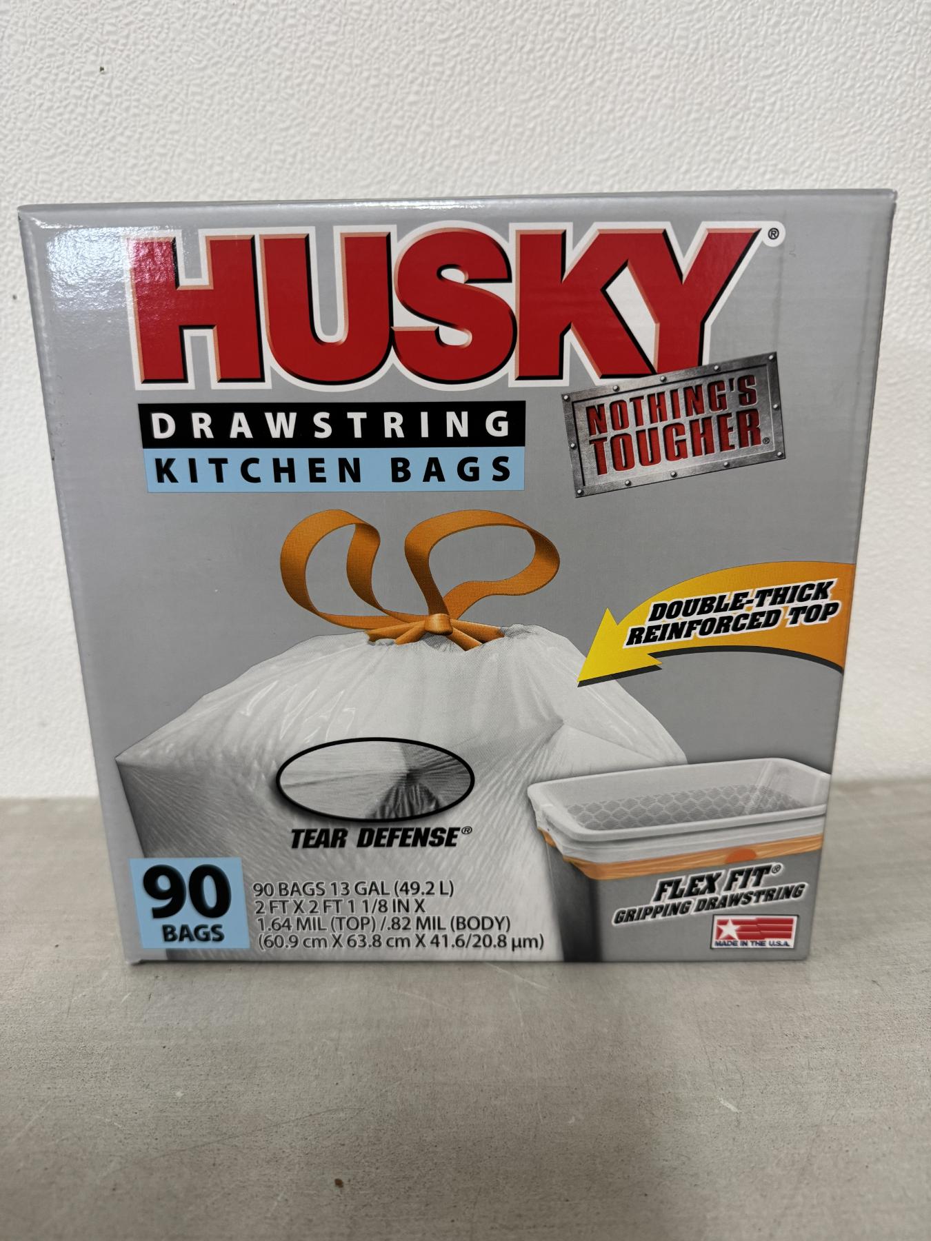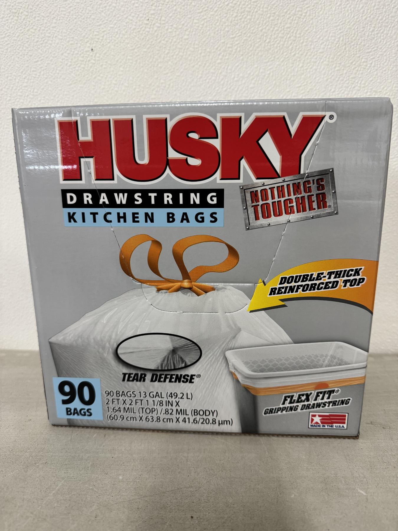 Brand New Husky Heavy Duty 13 Gallon Kitchen Garbage Bags - Box of 90