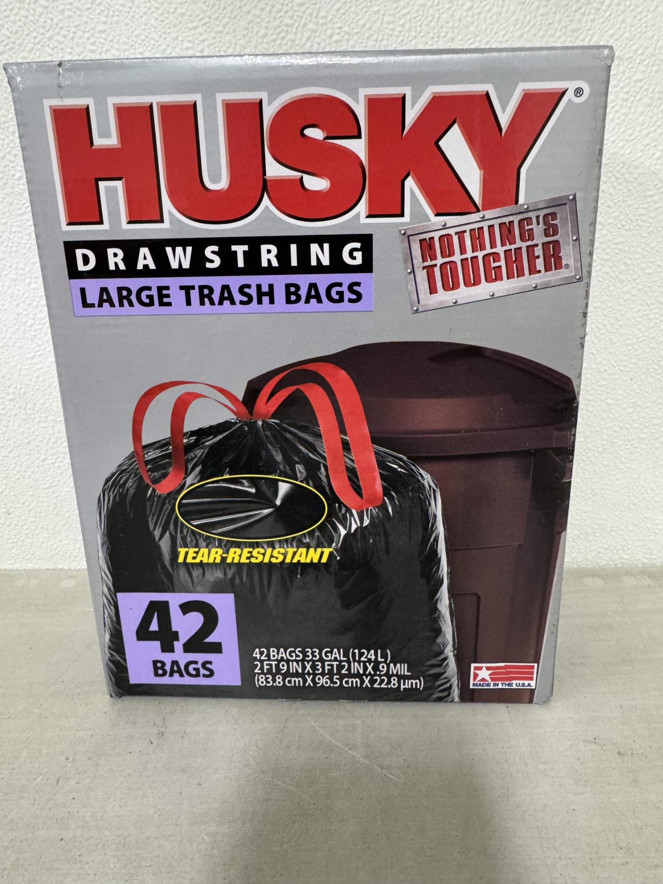 Brand New Husky Heavy Duty 33 Gallon Large Trash Bags - Box of 42