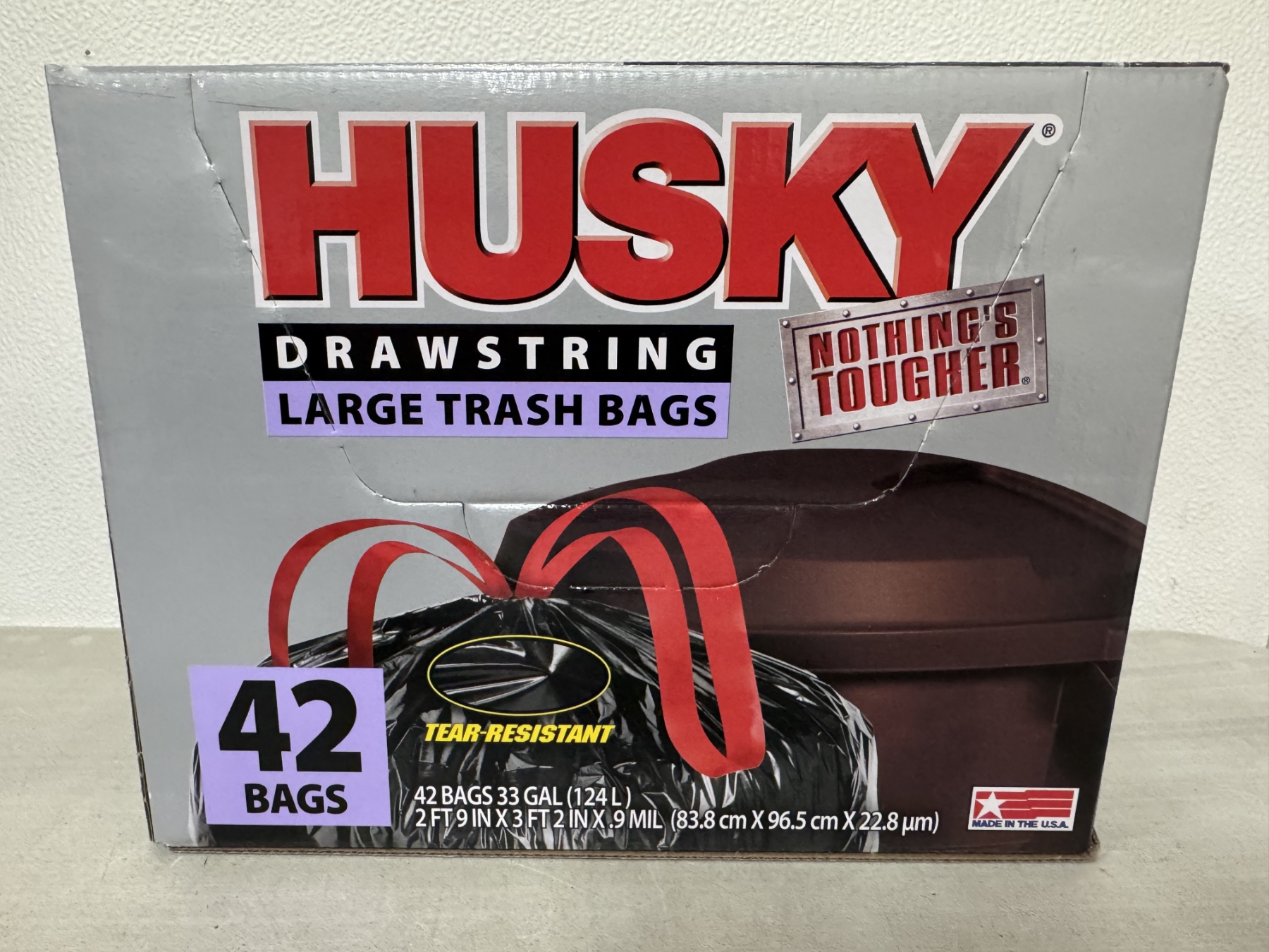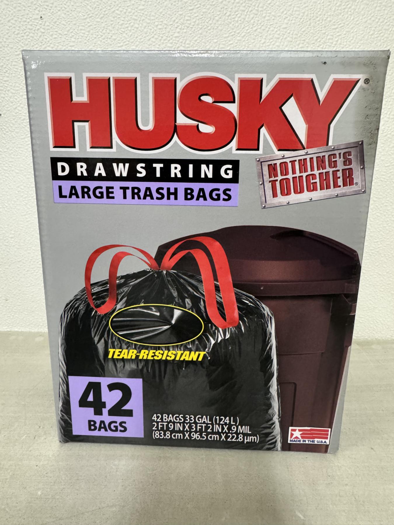Brand New Husky Heavy Duty 42 Gallon Large Garbage Bags - Box of 42