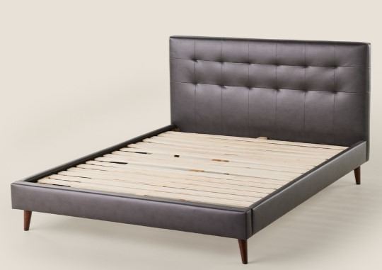 upholstered bed brings a sleek, modern vibe to your sleeping space with its laid-back yet sophisticated design. Offered exclusively through us, this bed comes in your choice of low-maintenance grey linen-look fabric or dark grey vegan leather—both accented by clean tufting that enhances your room’s contemporary charm and sets the stage for restful nights.