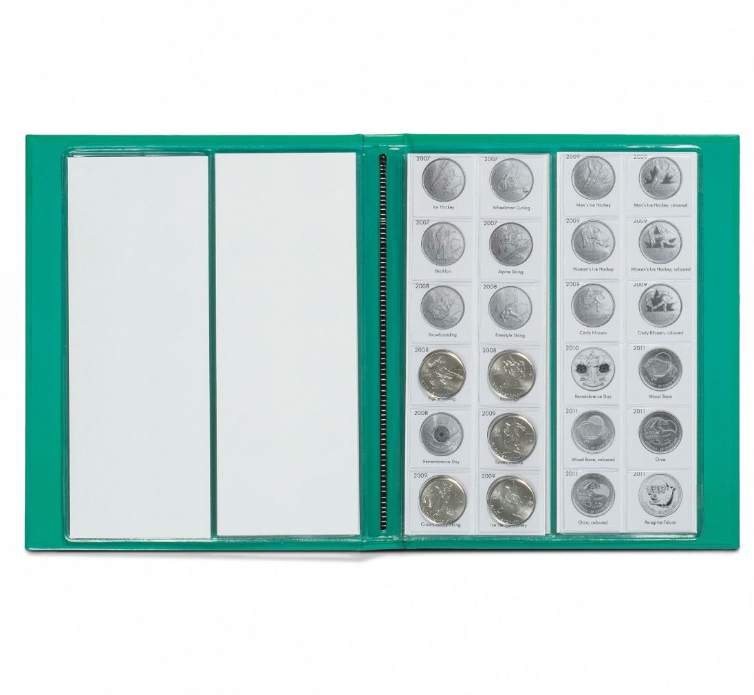 Brand new from LIGHTHOUSE the KASKADE albums ; Lot of 8 Different 1 cent, 5 cents, 10 cents, 25 cents, 25 cents commemorative, 50 cents, 1 dollar, two dollars.