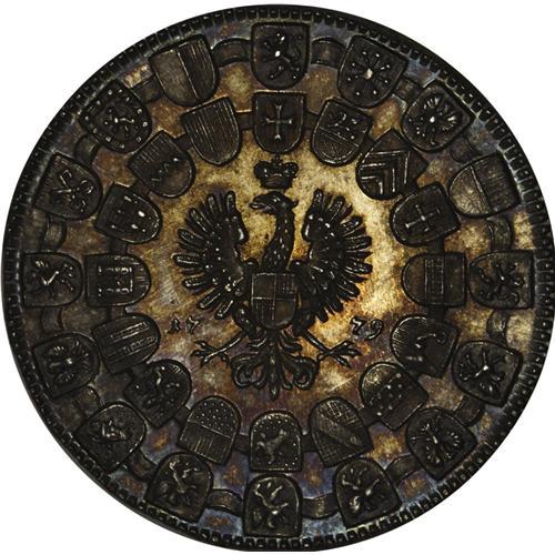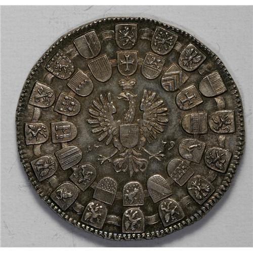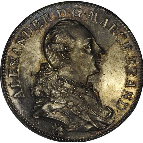 <B>Brandenburg-Ansbach. Alexander Taler 1779G,</B></I> KM315, Dav-2019, sharply struck UNC. The obverse is fully prooflike with a few noticeable marks. Both sides are nicely toned in shades of gold and blue. Very scarce in this condition.<BR><I>From the Blue Ridge Collection</B></I><BR><BR><b>Shipping:</b> Coin/Currency (<a target="_blank" href="http://www.heritageauctions.com/common/shipping.php">view shipping information</a>)