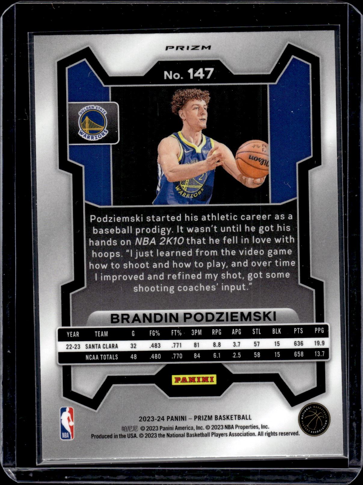 Brandin Podziemski Orange Cracked Ice RC 2023-24 Prizm #147