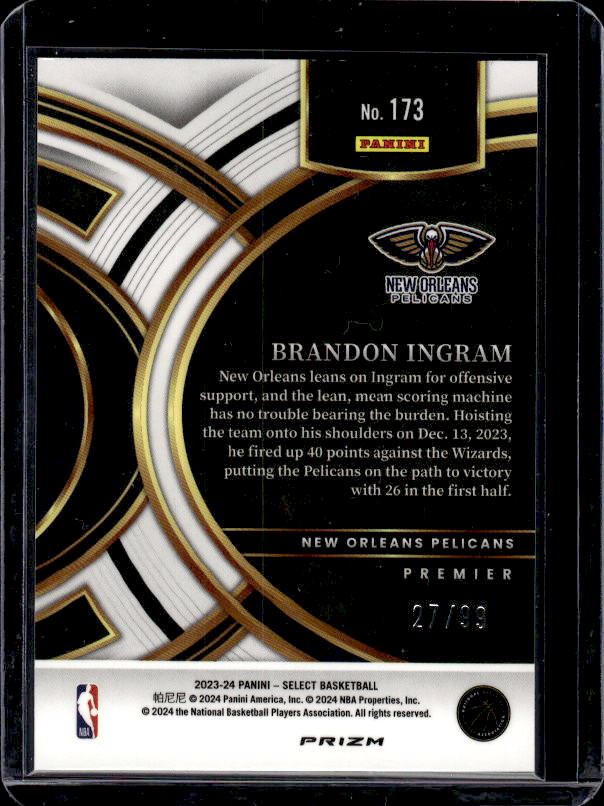 Brandon Ingram '23-24 Panini Select #27/99 Purple Cracked Ice #173