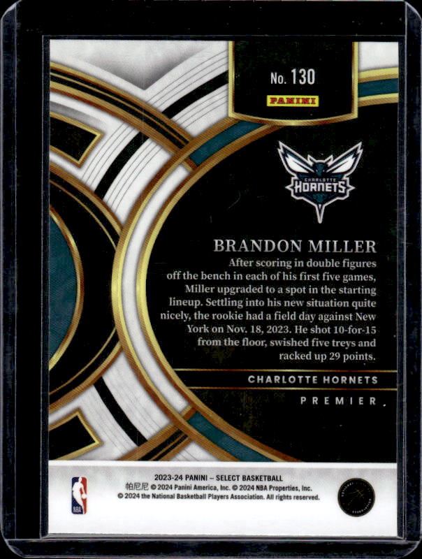 Brandon Miller RC 2023-24 Select Premier Level #130