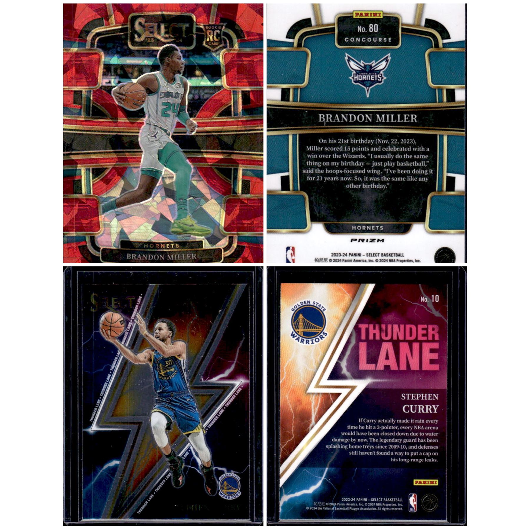 Brandon Miller RC Select Red Cracked Ice & Steph Curry 2023-'24 Select Thunder Lane