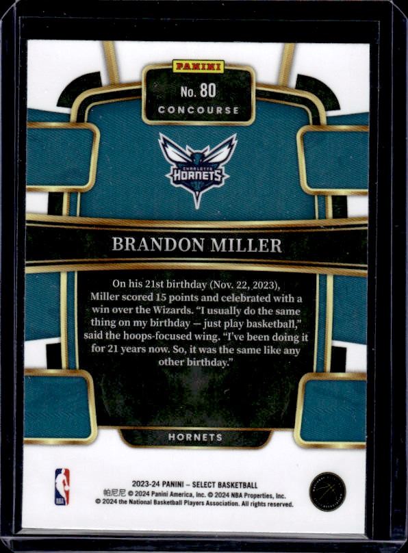 Brandon Miller ROOKIE CARD 2023 - 2024 Panini Select Concourse #80