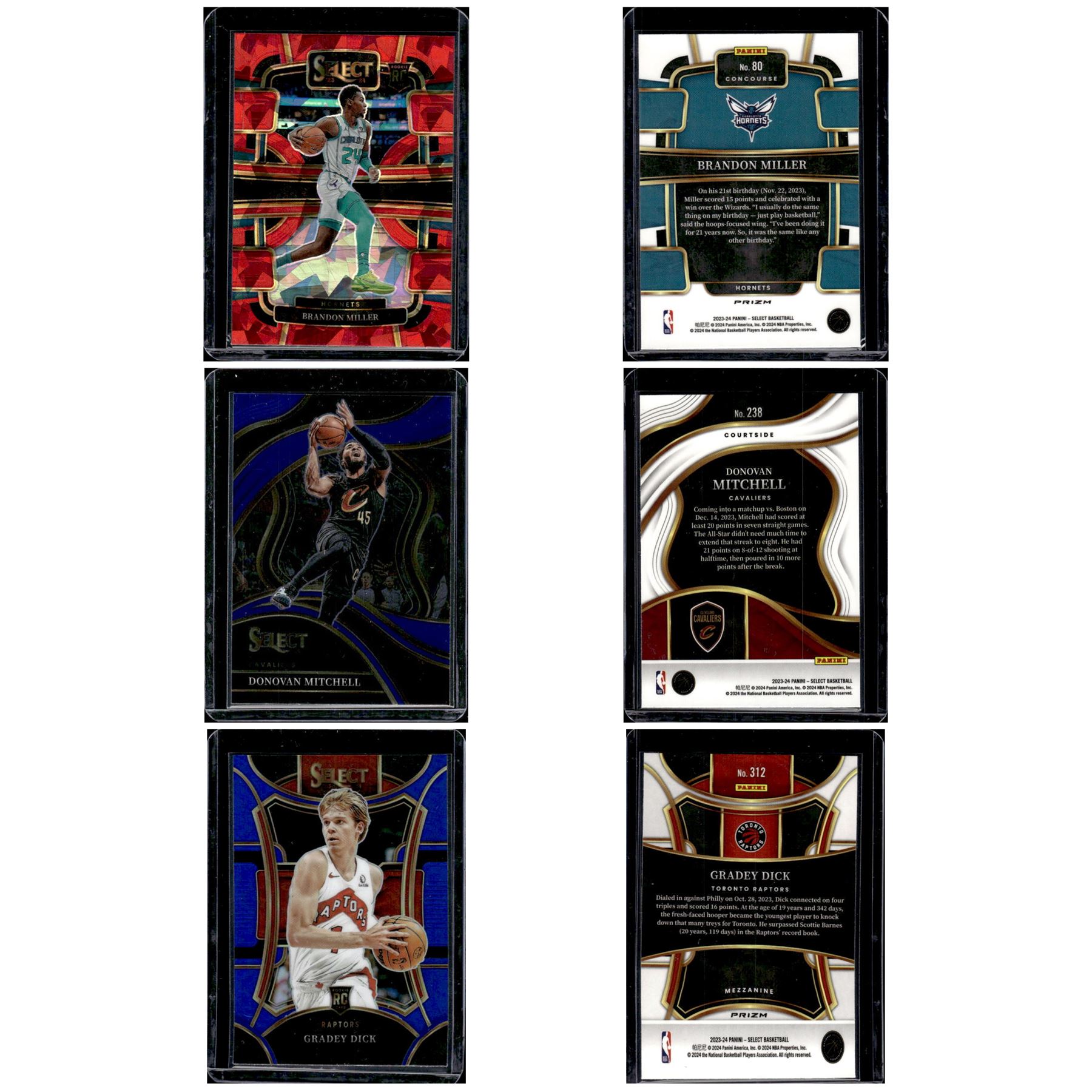 Brandon Miller Red Cracked Ice, Donovan Mitchell Courtside, & Gradey Dick Prizm Mezzanine.