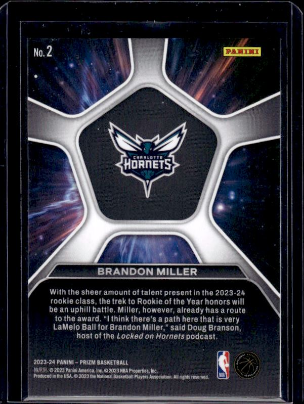 Brandon Miller Rookie Card 2023-24 Panini Prizm Deep Space #2