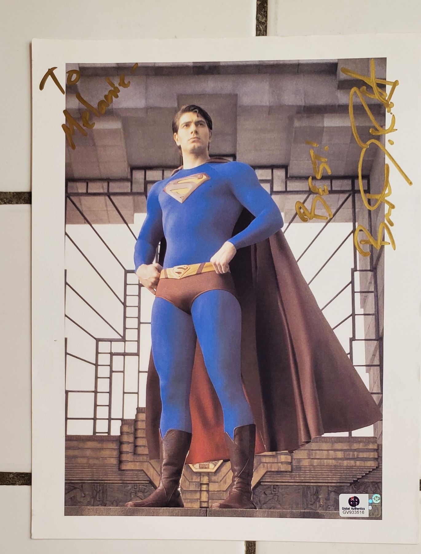 An 8” x 10” photograph signed by Brandon Routh. The autograph is authenticated by Global Authentics who issued a COA numbered GV 933516.