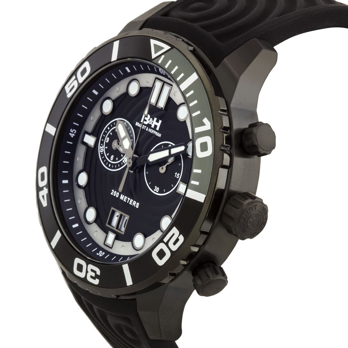 A bold take on a classic design. Apply named Epicenter, as the design inspiration of this watch comes from ripples in the water. As seen in the dial design as well as the comfortable silicone strap, an off center point (the epicenter if you will) ripples throught the rest of the watch. The raised chapter ring a top the rippled texture dial is filled with BGW9 Superluminova markers, making it perfectly visible in little to no light. Inside the large but not bulky 48mm case lies the true epicenter of this watch. The Swiss Ronda 5020.B Movement accurately provides the time and date as well as chronographic complications. Unique and just flat out cool, the Brandt & Hoffman Epicenter is a must have.